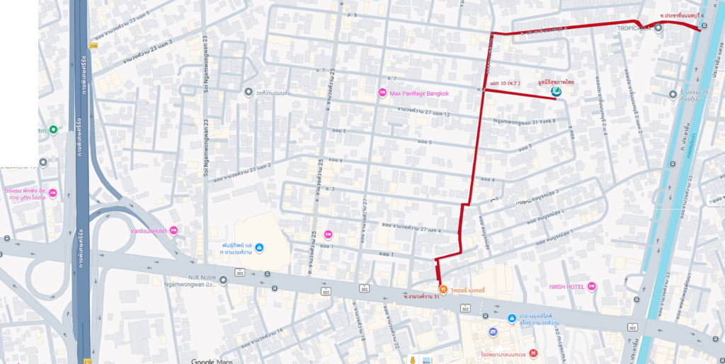 (1) จากถนนงามวงค์วาน : เข้าซอยงามวงค์วาน 31 วิ่งตามเส้นสีแดงไปจนถึง แยก 10 (ซ.7) ให้เลี้ยวขวาเข้าซอยประมาณ 50เมตร สำนักงานจะอยู่ด้านซ้าย ประตูสีฟ้า