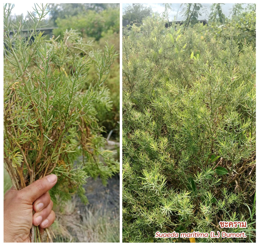 ชะคราม (ชื่อวิทยาศาสตร์ : Suaeda maritima (L.) Dumort.,ชื่อสามัญ: Seablite) แม้จะเป็นพืชล้มลุกป่าชายเลนแต่ก็สามารถงอกงามได้ตลอดทั้งปี และมีอายุยืนยาว อย่างไรก็ตาม ในฤดูฝนชะครามจะเจริญสมบูรณ์อวบอิ่มและเขียวเข้มดั่งเส้นมรกต เป็นที่รู้กันว่าชะครามเป็นเหมือนปรอทวัดความเค็มของดินในบริเวณชายทะเล ป่าชายเลนและนาเกลือได้ดี โดยชะครามที่ขึ้นในดินเค็มมากใบจะออกสีแดงอมม่วงอ่อน และต้นที่ขึ้นในดินที่เค็มน้อยหรือดินกร่อยใบจะออกสีเขียวเข้มหรือสีเขียวแกมน้ำเงิน ดังนั้น ชะครามจะมีสีเฉดใด รสชาติเค็มมากน้อยจึงขึ้นอยู่กับพื้นที่และฤดูกาล กล่าวคือ ในฤดูแล้งน้ำแห้งดินเค็มจัด พุ่มชะครามจะออกเป็นสีแดงอมม่วง แต่ช่วงฤดูฝนน้ำมาก ความเค็มในดินลดลง พุ่มชะครามจะมีสีเขียวสด กิ่งก้านอวบน้ำ รสชาติไม่เค็มมาก แต่อุดมด้วยคุณค่าทางอาหารและยาสูงสุด
